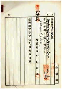 七〇 第五八号 宜蘭庁利沢簡堡ノ利沢簡庄・頂清水庄、茅仔椙堡ノ一百甲庄・茅仔椙庄・松仔脚庄・中二結庄、二結堡ノ下三結庄・下五結庄ニ豚虎列刺発生ノ件