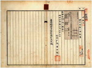 一一 第五号 明治三九年五月桃園庁訓令第二八号本庁各課及各支庁判任官配置定員中改正ノ件