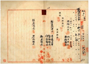五一 新竹庁・苗栗庁・斗六庁・嘉義庁・台東庁ノ告示、嘉義庁ノ訓令、恒春庁ノ内訓供閲ノ件(1907-05-01~1907-05-14);第三七号 新竹庁竹南一堡中港街磯部直継ノ収入印紙売捌人ヲ廃業スルノ件(1907-04-27~1907-05-14)