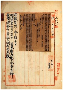 二五 第三〇号 苗栗庁苗栗三堡星山嘩(元枋椙嘩、旧社嘩)ヲ明治三四年律令第六号台湾公共課嘩規則第一条第二条及ヒ明治三七年台湾総督府令第一三号台湾公共課嘩規則施行規則第二条ニ依リ公共課嘩ニ認定並ニ其灌漑区域制定ノ件