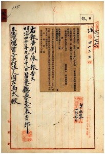 六二 第七一号 公共課嘩星山嘩ハ明治三七年二月府令第一三号台湾公共課嘩規則施行規則第七条ニ依リ庁長ノ管理トス