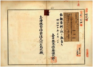 九七 第二五号 明治三八年四月台中庁訓令第七号中葫芦卸支庁頂街ノ次ニ馬崗鮎派出所ヲ加ヘ薪炭油費・小使費制定ノ件