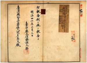 一〇二 第一一号 明治三九年一二月陸軍省令第一六号第一条ニ依リ混成第二旅団管下ニ於ケル徴兵身体検査施行部隊指定ノ件並ニ明治四〇年一月二七日台中庁報第六一九号彙報欄徴兵身体検査ニ関スル件備考中正誤ノ件