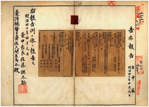 臺中廳告示第三十三號彰化廳下ニ牛疫發生ノ件、臺中廳告示第三十四號船鑑札無效ノ旨彰化廳ヨリ通知ノ件、臺中廳告示第三十五號阿片煙膏取次人變更ノ件