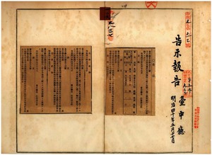 臺中廳告示第五十三號斗六廳下ニ獸疫發生ノ件、臺中廳告示第五十四號斗六廳ヨリ牛疫發生ノ件、臺中廳告示第五十五號船鑑札流失ノ旨宜蘭廳ヨリ通知ノ件、臺中廳告示第五十六號阿片煙膏請賣營業廢業ノ件、臺中廳告示第五十七號阿片煙膏請賣營業特許ノ件