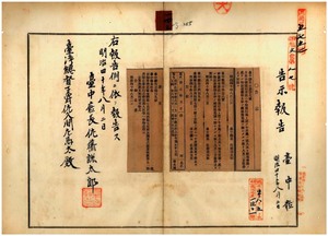一四三 第一〇七号 台中庁大肚中堡龍目井庄ニ流行シタ牛疫熄滅ニ付キ牛羊属ノ出入及病毒伝播ノ虞アル物品ノ運搬ヲ停止シタル処置ヲ解除ス(1907-08-02~1907-09-06);第一〇八号 台中庁猫羅堡呉鮎庄ハ流行シタ牛疫熄滅ニ付キ牛羊属ノ出入及病毒伝播ノ虞アル物品ノ運搬ヲ停止シタル処置ヲ解除ス(1907-08-02~1907-09-06);第一〇九号 台中庁大肚上堡牛罵頭街謝火琳ハ台湾医生免許規則第七条ニ依リ医業ヲ一ヶ月間停止ス(1907-08-02~1907-09-06)