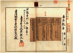 一四四 第一一〇号 斗六庁管内ニ牛疫発生ニ付キ同庁ヨリ通知ノ件(1907-08-09~1907-08-28);第一一一号 明治三九年六月一九日台中庁告示第七九号公共課嘩八宝嘩認定区域中追加ノ件(1907-08-09~1907-08-28)