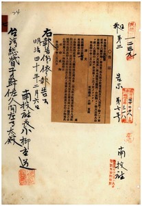 南投廳告示第七號斗六廳濁水蕃ヲ南投廳ニ所轄替ノ件