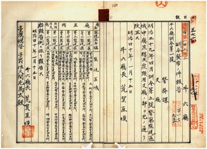 一一〇 第一号 明治三九年四月斗六庁訓令第五号警察監視区域中直轄及響頭鮎支庁ノ部改正ノ件