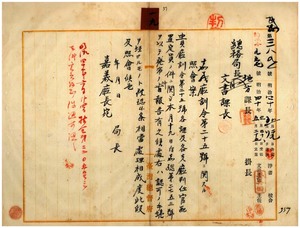 一九 嘉義庁・台南庁・蕃薯椙庁ノ訓令供閲ノ件(1907-06-27~1907-07-05);第二一号 明治四〇年一月嘉義庁訓令第二号街庄長会議規程第五条中梅仔坑支庁ヲ削除シ竹頭崎支庁ヲ追加ス(1907-05-19~1907-07-05);第二二号 明治三九年一二月嘉義庁訓令第四一号警察監視区中変更ノ件(1907-05-19~1907-07-05);第二三号 公学校財務規程取扱手続施行細則制定並ニ明治四〇年二月嘉義庁訓令第六号第七号ヲ廃止ス(1907-05-19~1907-07-05);第二四号 嘉義庁判任官各官定員制定並ニ明治三九年六月嘉義庁訓令第二一号ヲ廃止ス(1907-05-19~1907-07-05);第二五号 嘉義庁各課及支庁判任官配置定員制定並ニ明治三九年六月嘉義庁訓令第二二号廃止ス(1907-05-19~1907-07-05);嘉義庁訓令第二五号ニ関スル照会ノ件(1907-05-25~1907-05-29)
