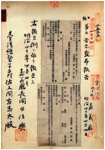 四一 第二一号 台湾阿片令規則第四〇条ニ依リ嘉義庁嘉義西堡嘉義街呉桙ノ阿片煙吸食所営業ヲ禁止ス(1907-04-04~1907-04-23);第二二号 蕃薯椙庁管内ニ豚疫発生ニ付キ同庁ヨリ通知ノ件(1907-04-04~1907-04-23);第二三号 公共課嘩六斗嘩ノ管理者何際唐ヲ林添有ニ副管理者江松ヲ蒋伝ニ更迭ノ件 (1907-04-09~1907-04-29)