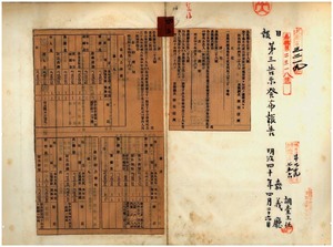四三 第二八号 嘉義庁台斗坑区山仔頂区庄役場位置変更ノ件(1907-04-26~1907-05-14);第二九号 明治三九年八月嘉義庁告示第七一号嘉義公学校・樸仔脚公学校・新港公学校・水堀頭公学校ノ明治三九年度歳入歳出予算追加及ヒ更正ノ件(1907-04-26~1907-05-14);第三〇号 嘉義公学校・樸仔脚公学校・新港公学校・打猫公学校・水堀頭公学校・双渓口公学校・太保公学校・大姓林公学校ノ明治四〇年度歳入歳出予算制定ノ件(1907-04-26~1907-05-14);第三一号 蕃薯椙庁管内ニ豚疫発生ニ付キ同庁ヨリ通知ノ件(1907-04-26~1907-05-14)