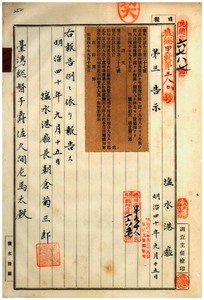 鹽水港廳告示第三十七號嘉義廳流行地ト認メシ件