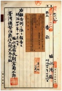 鹽水港廳告示第三十九號臺南廳牛疫發生ノ件