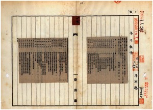 一六 第一三号 台湾種痘規則第二条ニ依リ定期種痘施行ノ件(1907-02-13~1907-02-23);第一四号 蕃薯椙庁管内ニ豚コレラ発生ニ付キ同庁ヨリ通知ノ件(1907-02-13~1907-02-23);第一五号 台南庁新化南里ノ菁埔椙庄及ヒ南庄ニ発生シタル豚疫終熄ノ件(1907-02-13~1907-02-23);第一六号 台南庁管内ノ何章・林降・v海・蘇廷旗・王婆娘・呉濶・黄頂・蔡林向・黄大田・陳瑞太・曽瑞高・呉密娘・方壱吉・沈胡・陳粗ハ阿片烟膏購買吸食特許鑑札亡失ニ付キ該鑑札ヲ無効トス(1907-02-13~1907-02-23)