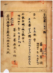 一二四 第四一号 鳳山庁・台南庁・阿緱庁各管内ニ牛疫発生ニ付キ各管轄庁ヨリ通知ノ件