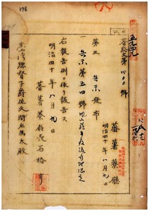一三七 第五四号 台湾獣疫予防規則第八条ニ依リ鳳山庁管内ヲ牛疫流行地ト認メ牛羊属及豚ノ出入并ニ病毒伝播ノ虞アル物品ノ搬出入ヲ停止シタル旨同庁ヨリ通知ノ件