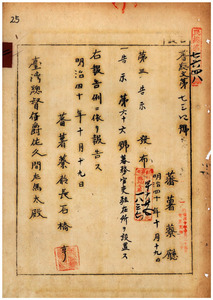 蕃薯廳告示第六十六號阿里關支廳管內ニ蕃務官吏駐在所設置ノ件