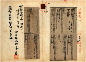 阿緱廳告示第二十九號牛疫發生ノ件、阿緱廳告示第三十號牛疫流行ニ關スル件、阿緱廳告示第三十一號恒春廳ヨリ牛疫發生通知ノ件、阿緱廳告示第三十二號恒春廳ヨリ牛疫發生通知ノ件、阿緱廳告示第三十三號蕃薯廳ヨリ豚疫發生通知ノ件