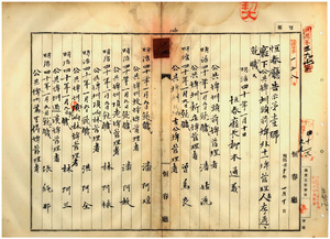 三四 第一号 恒春庁下公共課嘩頭前課ハ潘姑流ニ、新庄課ハ曽烏良ニ、驫古公課ハ潘阿瑶ニ、蚊蟀課ハ潘阿救ニ、頂老課ハ林阿禄ニ、頂堰林碑ハ洪阿全ニ、下堰林課ハ林阿三ニ、過渓課ハ張純那ニ、万里得課ハ郭眉ニ、港口課ハ古阿添ニ、九欄課ハ頼炳元ニ、・四重渓課ハ林天生ニ管理者就職ノ件
