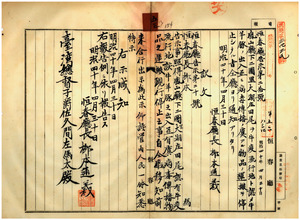 五三 第二〇号 鳳山庁管内ヲ牛疫流行地ト認メ牛羊豚ノ出入並ニ病毒伝播ノ虞アル物品ノ運搬ヲ停止シタル旨同庁ヨリ通知ノ件