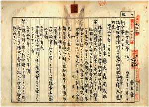 三一 第三五号 講会取締規則及同施行細則取扱手続制定ノ件(1907-10-05~1907-11-07);第三六号 製脳地請願勤務巡査巡査補所轄内出張巡回旅費月額支給額制定ノ件(1907-10-22~1907-11-22);第三七号 明治四〇年五月台東庁訓令第九号監視区担任警部補巡視周数中改正ノ件 (1907-11-22~1907-12-17);第三八号 明治三九年四月台東庁訓令第三号警察官吏所轄内出張巡回旅費月額支給額中馬蘭警察官吏派出所ノ一項ヲ追加ノ件(1907-12-09~1908-01-16);第三九号 明治四〇年八月台東庁訓令第二三号警察監視区庁直轄第二監視区中ニ馬蘭警察官吏派出所ヲ追加ノ件(1907-12-09~1908-01-16);第四〇号 明治三八年九月台東庁訓令第二〇号街庄社長地方税取扱規程中改正ノ件 (1907-12-17~1908-01-31);台東庁訓令第四〇号ニ関スル照会及ヒ回答ノ件(1908-01-11~1908-01-29);第四一号 警察事報規程制定ノ件(日付エラー~1908-01-31);第四二号 捜査ニ関スル処理規程制定ノ件(1907-12-21~1908-01-31);第四三号 明治三九年四月台東庁訓令第三号警察官吏所轄内出張巡回旅費月額支給額中清水蕃務官吏駐在所ノ一項ヲ追加ノ件(1907-12-23~1908-02-03)