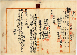 一六 台北庁長佐藤友熊ノ稟申ニ依リ台北庁大加蚋堡三板橋庄所在ノ内地人共同墓地ニ通スル廃道敷地無償還付ノ儀認可ノ件(指令第一二〇号)