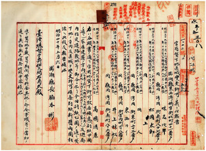 三二 澎湖庁長脇本彬ヨリ澎湖庁東西澳媽宮街居住ノ味志次平・松岡太郎・東西カイ・井上林松・高橋清廉ノ官有地貸下地ノ方向・区域ヲ家屋建築方向及遊廓内指定道路敷地等ノ都合ニ依リ変更許可ニ付キ報告ノ件