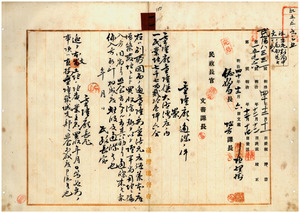 一一 内務次官吉原三郎ヨリ陸軍省ニ於テ弾薬本庫増築敷地トシテ買収シタル基隆庁基隆堡大沙湾庄内ノ民有地ヲ同省用地ニ編入方ニ付キ基隆庁ヘ通牒ノ件