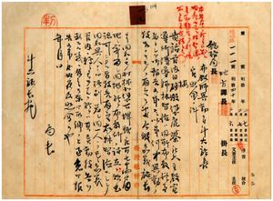 一三 旧教天主教ノ伝道師林智徳ヨリ出願ノ嘉義庁打猫南堡下課頭庄ニ旧教天主教下課頭庄天主教布教所設置ニ付キ認可シタル旨嘉義庁長岡田信興ヨリノ報告ニ関シ、林智徳ナル人物ハ斗六庁白沙卸堡鹿椙庄ノ天主教伝道師林智徳ト同一人物ナルカ否カニ付キ斗六庁長ヘ照会ノ件