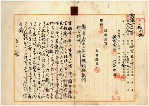 一五 斗六庁長荒賀直順ノ副申ニ依リ斗六庁斗六堡斗六街ノ広福宮ノ管理人鄭芳春ト信徒総代ノ荘義・陳長瑞ヨリ出願ノ祠廟維持困難ノ為メ処分シ、敷地ハ隣接スル斗六公学校ニ寄付スル願ニ付キ許可ノ件(指令第八〇一号)