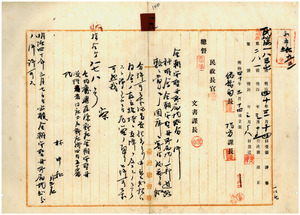 一九 台北庁長佐藤友熊ヨリ副申ノ金朝安聖母管理者林中和並ニ関係者ノ林俊傑ト魏建鏞ヨリ出願ノ同所属台北庁興直堡中港鮎庄並ニ訴圧財産ヲ道路敷地トシテ国庫ヘ寄付願許可ノ件(指令第八七八号)