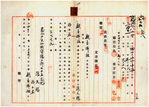 三六 台北庁長加藤尚志ヨリ副申ノ台北庁大加蚋堡錫口街ノ観音仏祖所属地ヲ道路敷地トシテ国庫ニ寄付スルニ依リ同廟管理人張天賜並ニ信徒総代張新宝ト林真ヨリ財産処分方出願ノ儀許可ノ件(指令第三七六九号)