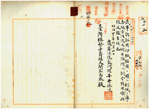 覆審法院長ヨリ民事訴訟用印紙貼用ニ關シ地方法院ヘ訓令ノ件報告