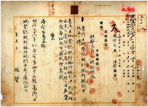 一四 台北地方法院長寺島小五郎ノ上申ニ依リ明治三八年六月府令第四三号台湾土地登記規則施行規則中一部改正ノ件(府令第九五号)(1907-09-03~1907-11-04);覆審法院長代理安井勝次ヨリ建議シタル戸口簿登記事務取扱上ニ関スル件(1907-05-29~1907-06-27)