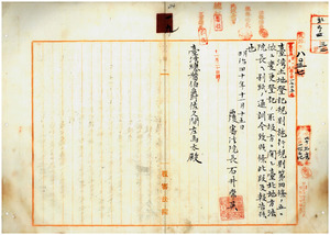 一九 台湾土地登記規則施行規則第四条ノ五ニ依ル土地ノ変更登記ノ取扱方ニ付キ台北地方法院庁ヨリノ請訓ニ対シ覆審法院長石井常英ヨリ訓令報告ノ件