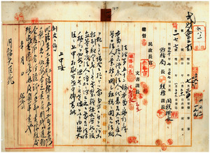 三十三年法律五十二號ヲ臺灣ニ施行ノ儀稟申敕令ヲ以公布ノ件(內務大臣外一名)