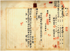 一四 台中庁長佐藤謙太郎ノ稟申ニ依リ明治三九年八月台中庁令第四一号台湾地方税規則施行細則中改正ノ儀認可ノ件(指令第一八一二号)
