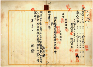 二〇 澎湖庁長脇本彬ノ申請ニ依リ明治三七年四月澎湖庁令第二号台湾地方税規則施行細則中改正方ノ儀認可ノ件(指令第二〇二〇号)
