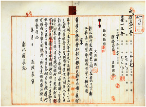 三四 大蔵省理財局長水町袈裟六ヨリ照会ノ株式会社彰化銀行定款変更届ニ関シ回答ノ件