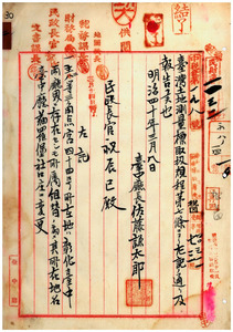 主三等三角點宮四十四號廳所屬變更報告ノ件(台中廳)