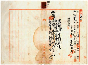 九 台中庁長佐藤謙太郎ヨリ稟申シタル猫羅堡ノ柳樹囚庄・丁台庄土名南勢・社口庄・喀哩庄・同安鮎庄・下茄裾庄、師東上堡ノ石崗仔庄土名金星面・東勢角庄土名石角・石崗仔庄土名九房鮎・同庄土名金星面・杜椙角庄土名梅仔樹脚・仙塘坪庄・水底椙庄土名下水底椙・新杜庄土名食水蕎・大坑庄・石囲墻庄土名石囲墻・石壁坑庄・仙塘坪庄・石囲墻庄土名石囲墻・石壁坑庄、師東下堡ノ杉園頭庄・馬崗鮎庄・頼鮎謙庄、藍興堡ノ五張犂庄・塗城庄・大突椙庄・太平庄・三秀庄、大肚上堡ノ楊鮎椙庄土名海風・呉鮎庄土名橋頭椙・三塊鮎庄土名菁埔、猫羅堡ノ柳樹囚(1906-12-06~1907-03-26);台中庁長佐藤謙太郎ヨリ稟申シタル猫羅堡ノ下茄裾庄・同安鮎庄、藍興堡五張犂庄・師東上堡ノ石崗仔庄土名九房鮎・東勢角庄土名石角、大肚下堡大肚庄ニ座落ノ開墾地業主権認定方稟申中地番更正方認可ノ件(指令第一四五三号)(1907-04-02~1907-04-24)