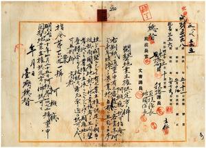 一三 阿緱庁長佐々木基ヨリ稟申シタル港西上里ノ加蚋埔庄・阿倭泉庄・土庫庄、港東中里ノ東港街・南屏庄・新課頭庄・田茄鮎庄ニ座落ノ開墾地業主権認定方認可ノ件(指令第一六九一号)