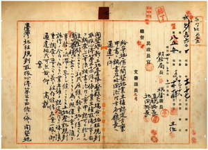 紛爭地ニ係ル開墾地業主權認定稟申書ニ調書及略圖添付方通達ノ件(台北廳外十七廳)