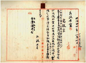 一一 台湾総督府鉄道部長男爵後藤新平ノ稟申ニ依リ明治三五年三月法律第一三号台湾官設鉄道用品資金会計法中改正ニ関スル法律公布方貴衆両院通過通知ノ件