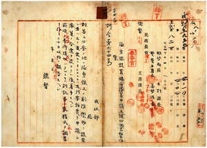 一六 対蕃上必要ノ地ニ隘勇線ヌハ副防禦物ヲ設置シ若ハ之ヲ変更セントスルトキハ予算申請並竣成調書報告ノ件(訓令第六四号)
