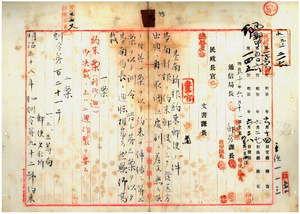 九 株式会社台南新報社支配人宮本一学ノ申請ニ依リ株式会社台南新報社発刊ノ台南新報郵送上ニ関スル約束書ニ依リ明治三八年四月訓令第九二号約束郵便物トシテ取扱フヘキ定期刊行物中ニ台南新報追加(訓令第一二一号)並ニ台南新報郵送上ニ関スル担保及ヒ郵便料金徴収方台南郵便局長速水経憲ヘ通牒ノ件