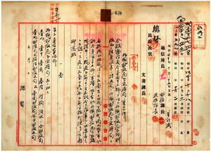 三〇 外国郵便為替交換局トシテ台北・台中・台南・基隆・打狗・淡水ノ各郵便局及ヒ台北郵便局大稲花郵便支局・台南郵便局安平郵便支局ヲ指定ノ件(告示第一六四号)並ニ外国郵便為替通常局ニ於テハ外国通常為替事務ハ明治三七年二月告示第一三号ノ事務分掌区域ニ依リ取扱ヒ明治四〇年七月訓令第一三五号ハ廃止ス(訓令第一九七号)