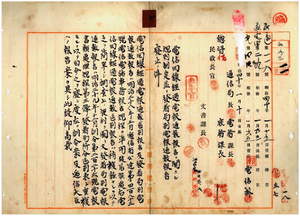 二 電信回線経過電報通数区別報告ニ関スル規則制定(訓令第一一号)並ニ明治三八年九月逓信省公達第四八五号電信電話事務報告規程中発着局別電報通数報告廃止(訓令第一二号)ノ件