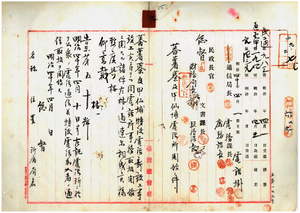 九 蕃薯椙ト甲仙埔ノ電話所開設ニ付キ両電話所通信取扱開始(告示第五〇号)、蕃薯椙ト甲仙埔間ノ電話通信開始(告示第五一号)、明治三七年一一月府令第八五号中電話料及電話呼出料ノ部追加(府令第二一号)、明治三七年一一月告示第一四五号電話呼出地域追加(告示第四九号)、明治三八年五月告示第六五号電報規則第七五条ニ依ル電報取扱局追加(告示第五二号)ノ件